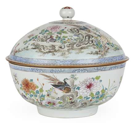 IMPRESSIVE CHINESE EXPORT PORCELAIN BOWL AND COVER