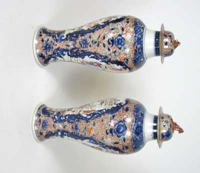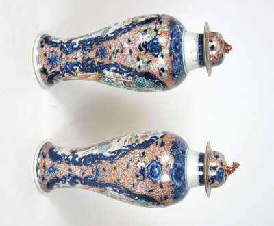 PAIR OF CHINESE EXPORT FAMILLE ROSE COVERED VASES