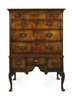 GEORGE I WALNUT AND FEATHERBANDED CHEST ON STAND
