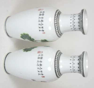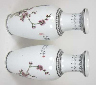 PAIR OF CHINESE FAMILLE ROSE BALUSTER VASES