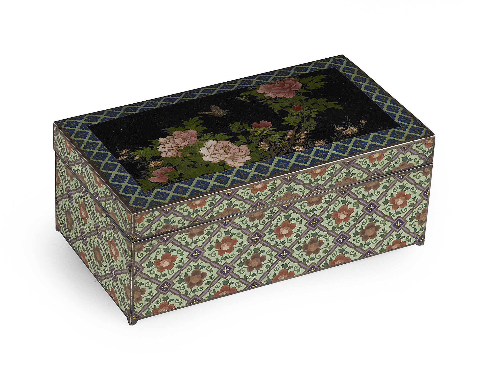 FINE CLOISONNE ENAMEL AND SILVER BOX BY NAMIKAWA YASUYUKI (1845-1927)