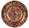 the rounded central boss with moulded gadroons in blue and copper lustre enclosed by a band of stylised leaves and rope twist motifs, the border decorated with flattened leaves against a copper lustre ground, the reverse with loose leaves and swirls