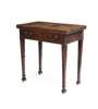 the foldover top above one frieze drawer, raised on moulded square tapered legs ending in spade feet