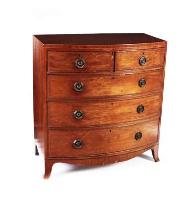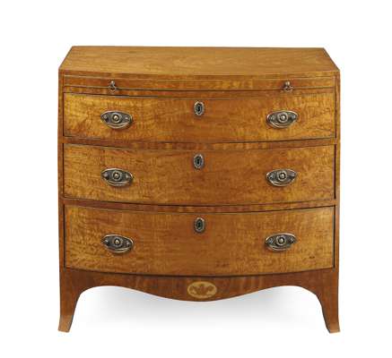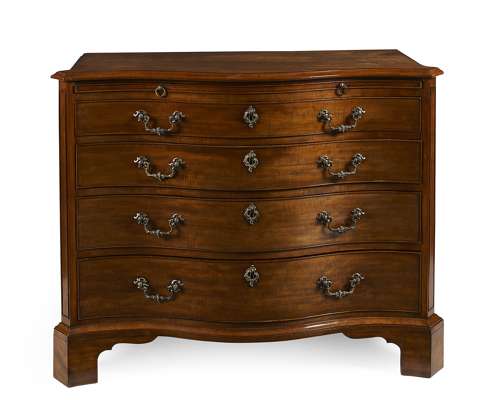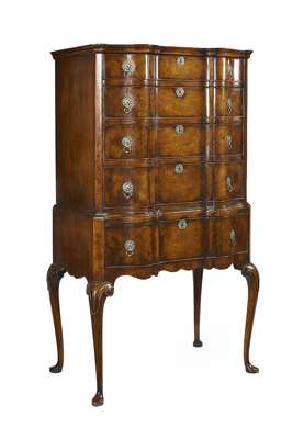 GEORGE I STYLE WALNUT AND CROSSBANDED SERPENTINE CHEST OF DRAWERS