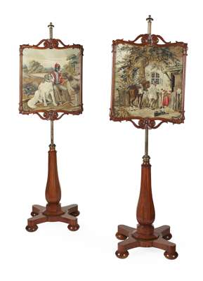 PAIR OF EARLY VICTORIAN MAHOGANY POLE SCREENS