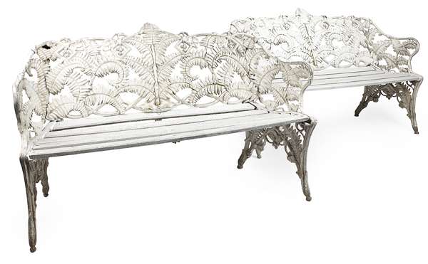 PAIR OF PAINTED METAL COLEBROOKDALE STYLE GARDEN BENCHES
