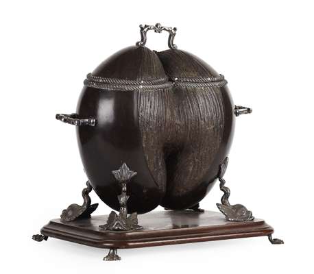 COCO DE MER (LODOICEA MALDIVA) WHITE METAL MOUNTED WINE COOLER