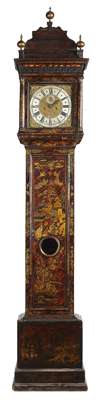 QUEEN ANNE RED JAPANNED LONGCASE CLOCK BY WILLIAM MOORE, LONDON