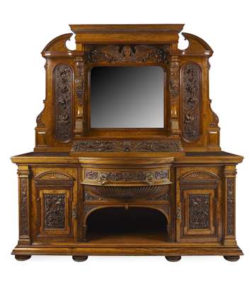 IMPRESSIVE VICTORIAN POLLARD OAK MIRRORED BACK SIDEBOARD