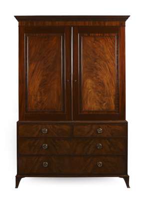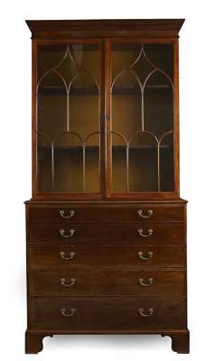 GEORGE III FIGURED MAHOGANY CHEST ON CHEST