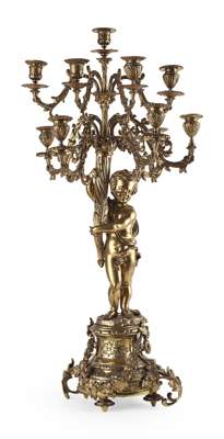 VICTORIAN GILT METAL FIGURAL CANDELABRA