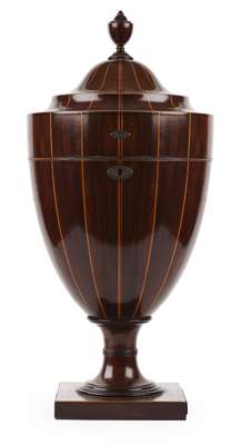GEORGE III MAHOGANY AND INLAID URN FORM KNIFE BOX