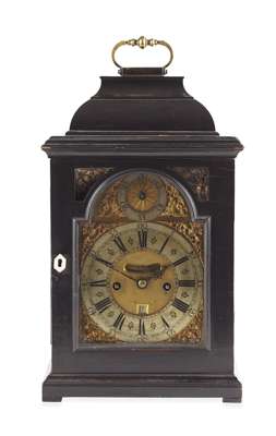 GEORGE I EBONISED BRACKET CLOCK BY SIMON DE CHARMES, LONDON