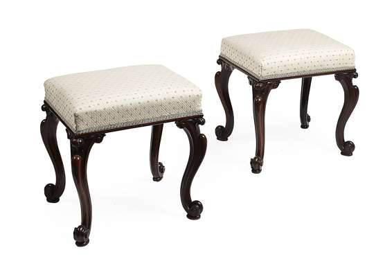 PAIR OF VICTORIAN ROSEWOOD UPHOLSTERED STOOLS