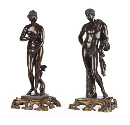 PAIR OF FRENCH BRONZE FIGURES OF VENUS DE MEDICI AND THE BELVEDERE ANTINOUS