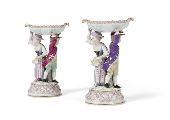 PAIR OF MEISSEN PORCELAIN FIGURAL SALTS