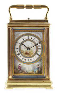FRENCH BRASS AND PORCELAIN REPEATING CARRIAGE CLOCK
