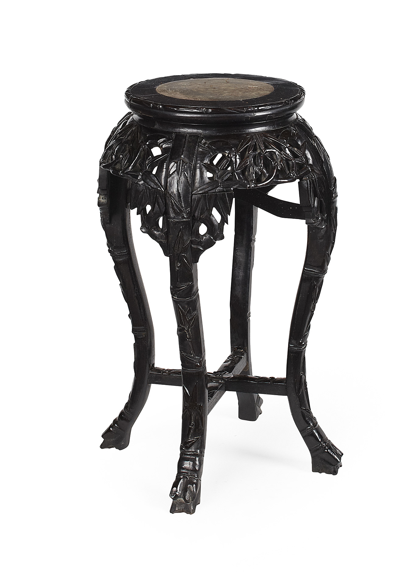 CHINESE CARVED BLACKWOOD AND MARBLE STAND