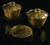 PAIR OF CHINESE GILT-DECORATED JADE COVERED BOWLS AND SAUCERS