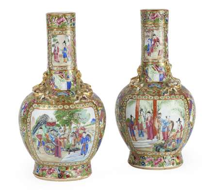 PAIR OF CHINESE CANTON BOTTLE VASES