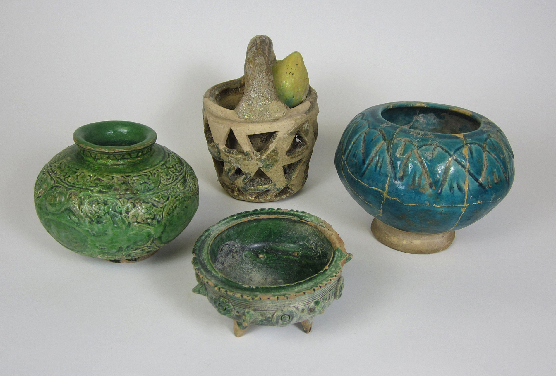 GROUP OF PERSIAN GLAZED POTTERY ITEMS
