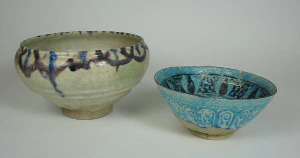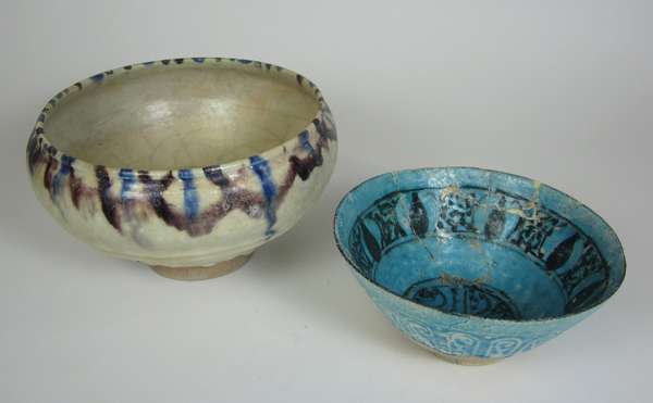 TWO EARLY PERSIAN TURQUOISE GLAZE POTTERY BOWLS