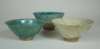 with underglaze stylised foliate decoration, largest 18cm diam, together with another turquoise glaze pottery bowl, with incised decoration, 16cm diam, and two white glazed pottery bowls, one with a drip glaze decorated rim, largest 22cm diam (5)