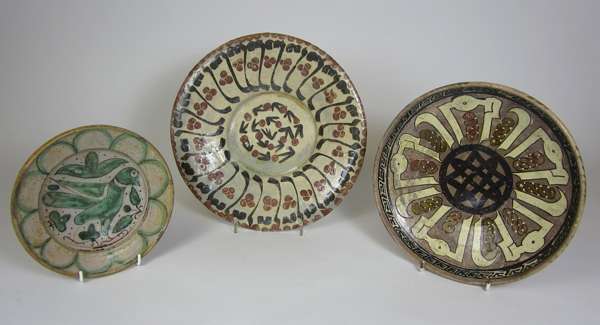 with slip painted decoration, 30cm diam; together with two other smaller early Persian pottery bowls, 26cm & 19cm diam (3)