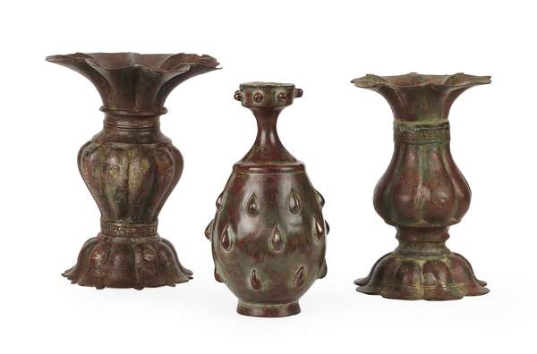 TWO PERSIAN FLARED FORM BRONZE VASES