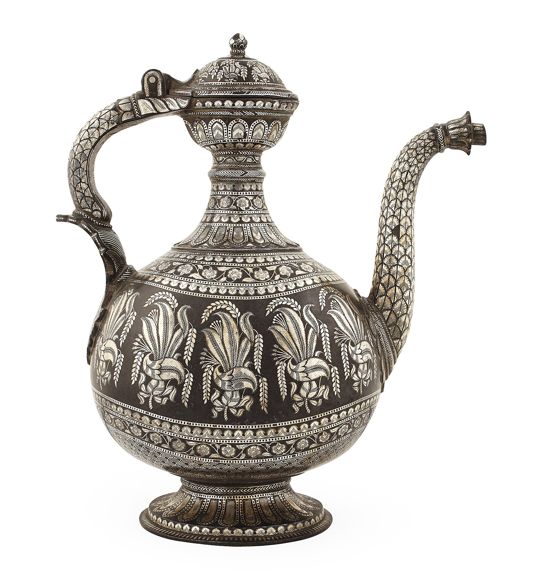 PERSIAN SILVER DAMASCENED STEEL EWER