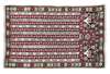 the field with polychrome vertical striped pattern, brown spandrels with hand designs, within brown star border