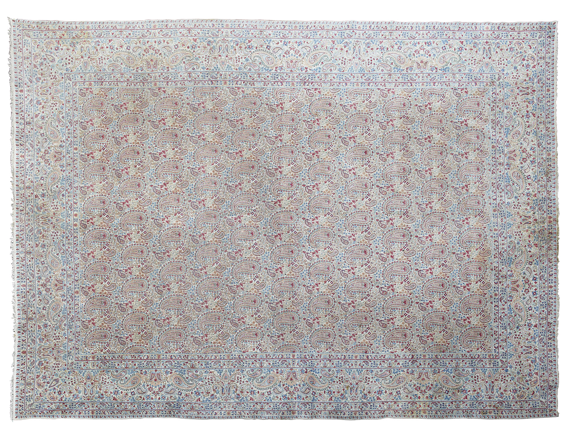 the cream field with allover polychrome floral boteh pattern, within similar border between similar bands