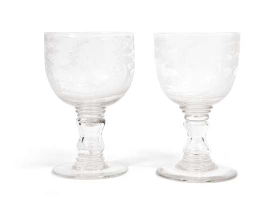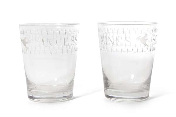 PAIR OF 'SUCCESS TO THE MINES' ENGRAVED GLASS BEAKERS