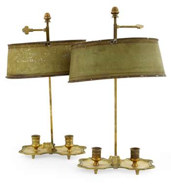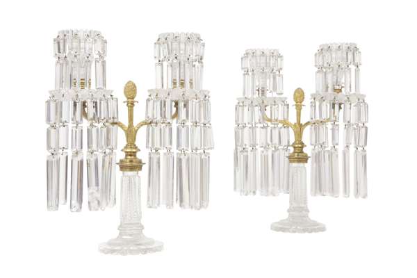 PAIR OF ENGLISH CUT GLASS AND GILT BRONZE CANDELABRA