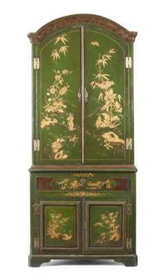 GEORGE I GREEN JAPANNED CORNER CABINET