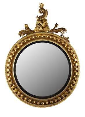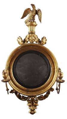 NEAR PAIR OF REGENCY GILTWOOD CONVEX GIRONDOLE MIRRORS
