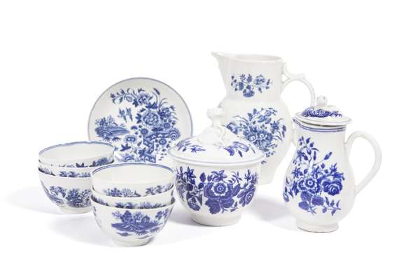GROUP OF FIRST PERIOD WORCESTER BLUE AND WHITE PORCELAIN