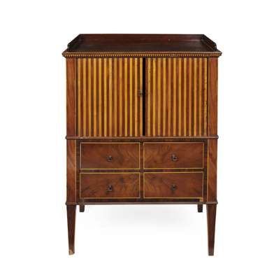GEORGE III MAHOGANY AND SATINWOOD BEDSIDE COMMODE