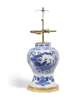 of panelled baluster form decorated with reserves with peacocks and flowering branches against a ground filled with flowers, fruit and dots, now mounted as a lamp