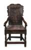 CHARLES II CARVED OAK PANEL ARMCHAIR