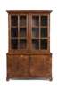 the straight moulded cornice over a pair of glazed and mullioned doors opening to shelves, above a pair of cupboard doors, raised on bracket feet, the interior with an old paper auction listing dated 1930