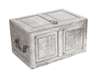 the rectangular hinged top with double panel and a central lock, with steel handles to the sides