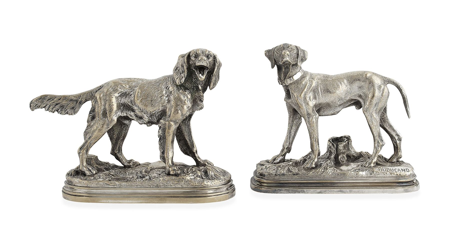 pair of silvered bronzes, signed 'DUBUCAND' (2)