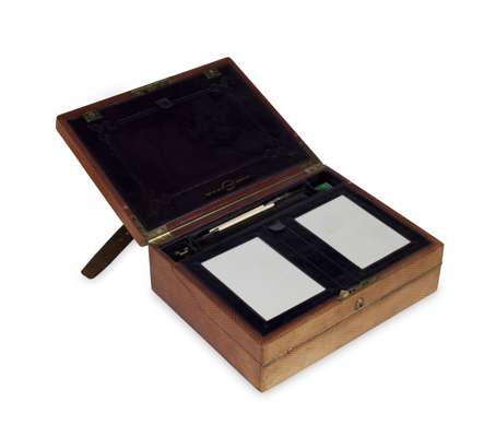 FINE EARLY VICTORIAN LEATHER CASED TRAVEL DESK