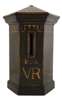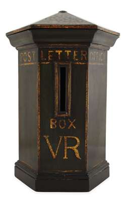 inscribed 'POST OFFICE LETTER BOX VR,' the detachable cover inscribed 'ANSWERED' and 'UNANSWERED, raised on moulded plinth bases, the painted surface refreshed (2)