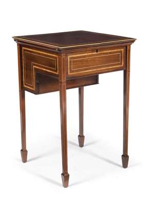 EDWARDIAN MAHOGANY AND SATINWOOD INLAID WORK TABLE
