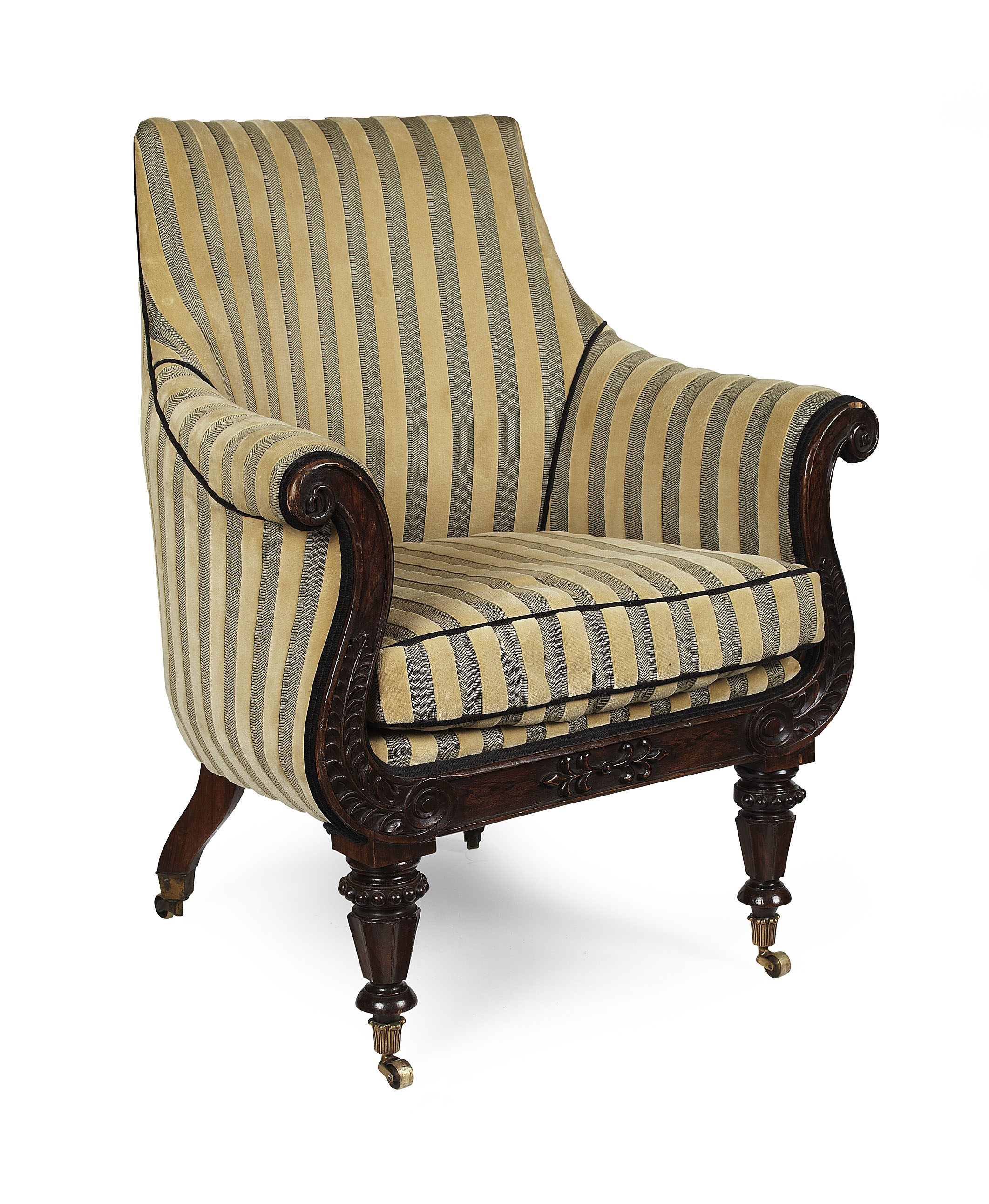 GEORGE IV SIMULATED ROSEWOOD AND UPHOLSTERED LIBRARY CHAIR
