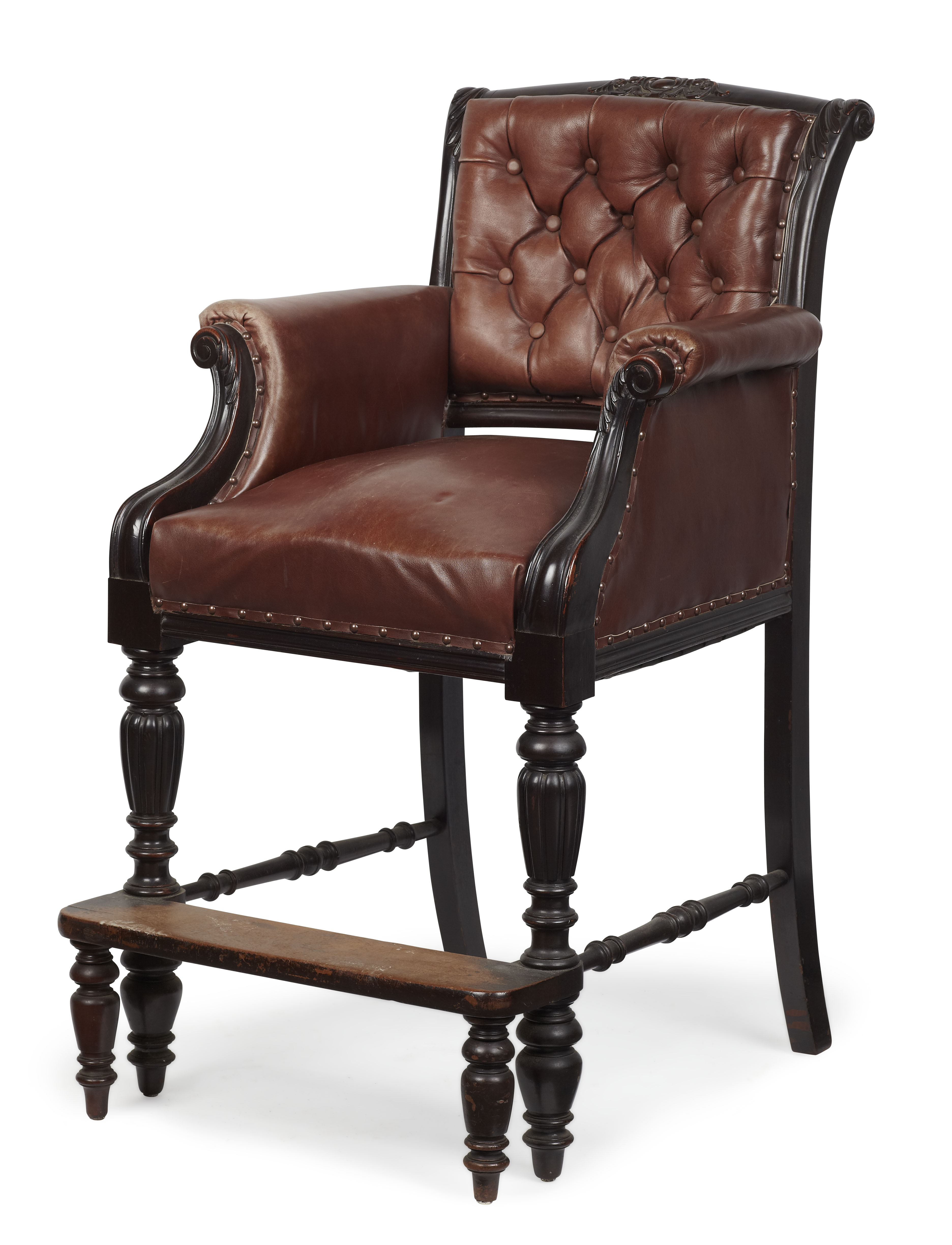 EARLY VICTORIAN MAHOGANY AND LEATHER UPHOLSTERED CLERK'S CHAIR