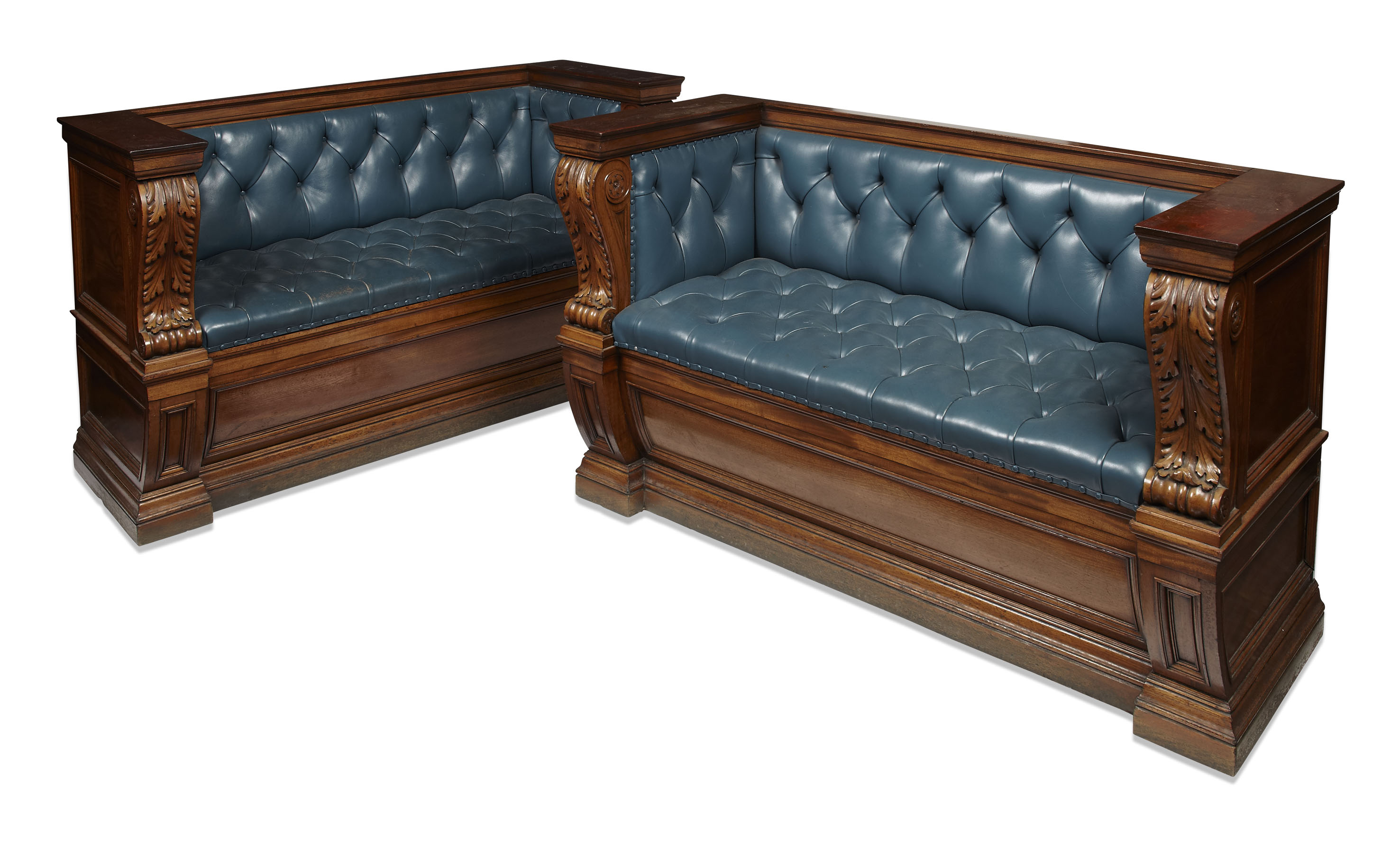 FINE PAIR OF SCOTTISH VICTORIAN MAHOGANY BANQUETTES, BY JOHN TAYLOR, EDINBURGH †