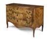 NORTHERN ITALIAN OLIVE WOOD, WALNUT AND FRUITWOOD PARQUETRY SERPENTINE COMMODE